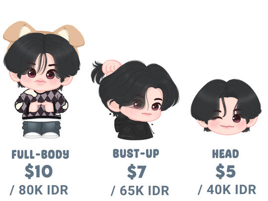 Hello! Thank you for visiting Jelly Jakeu's page. Here, I present comprehensive information about commission services, including commission rates and applicable terms and conditions. I provide commission information in both English and Indonesian languages. Please click the "Commissions" button and select the language you'd like to use for further information.